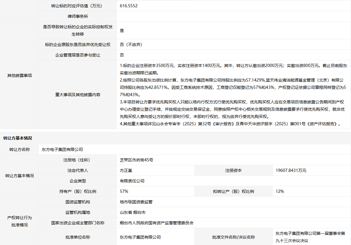 轉(zhuǎn)讓方:東方電子集團有限公司