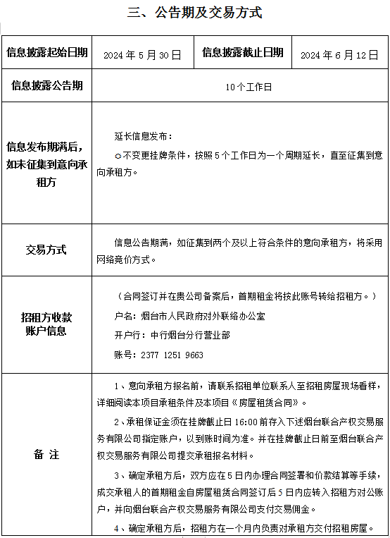掛牌起止日期:2024年05月30日至2024年06月12日