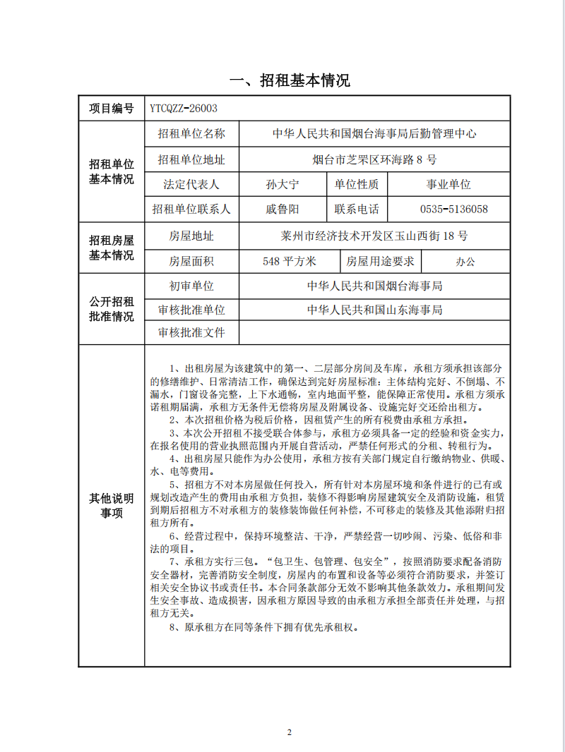 萊州后勤管理中心業(yè)務用房招租