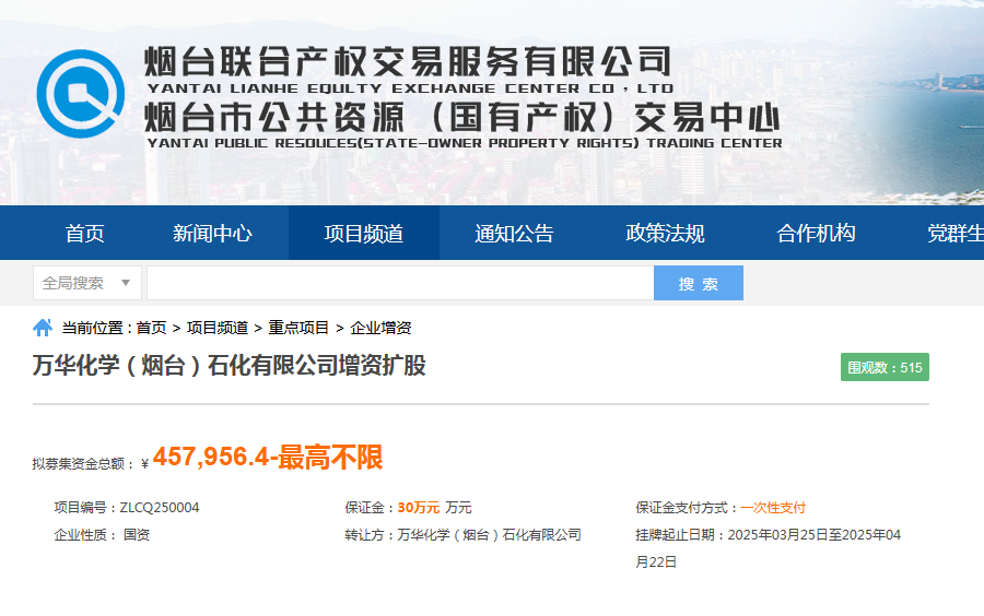 煙臺(tái)聯(lián)合產(chǎn)權(quán)創(chuàng)新服務(wù)賦能國(guó)企混改萬(wàn)華化學(xué)子公司成功引入戰(zhàn)略投資45.79億元